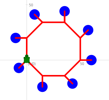 Zeichne das dargestellte Achteck in roter Farbe und Strichstärke 5.