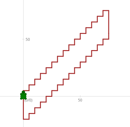 Tipp: Du wirst zwei Schleifen brauchen. Eine Schleife um die Treppe nach oben zu gehen. Dann musst du ein Stück zurückfahren und dann eine zweite Schleife um die Treppe nach unten zu gehen.