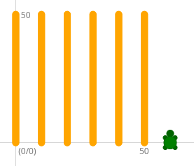Zeichne die dargestellten vertikalen Linien in der Strichstärke 10 mit der Farbe Orange.